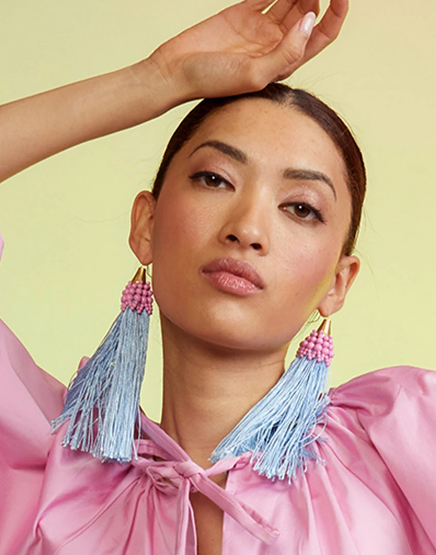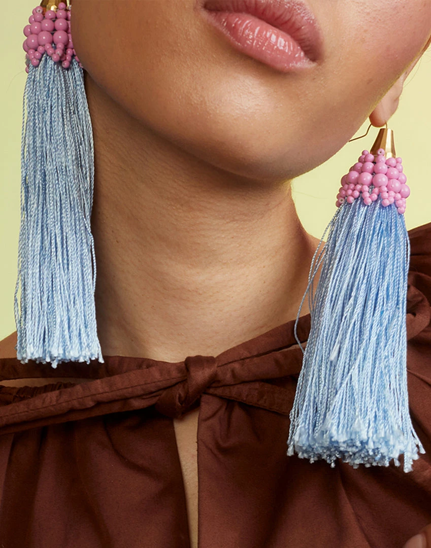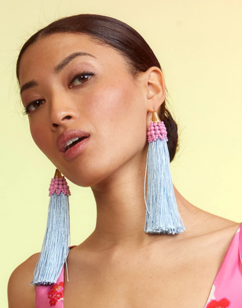 Pink beaded tassel earringÂ