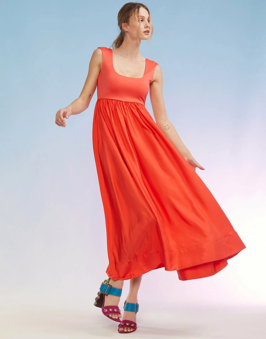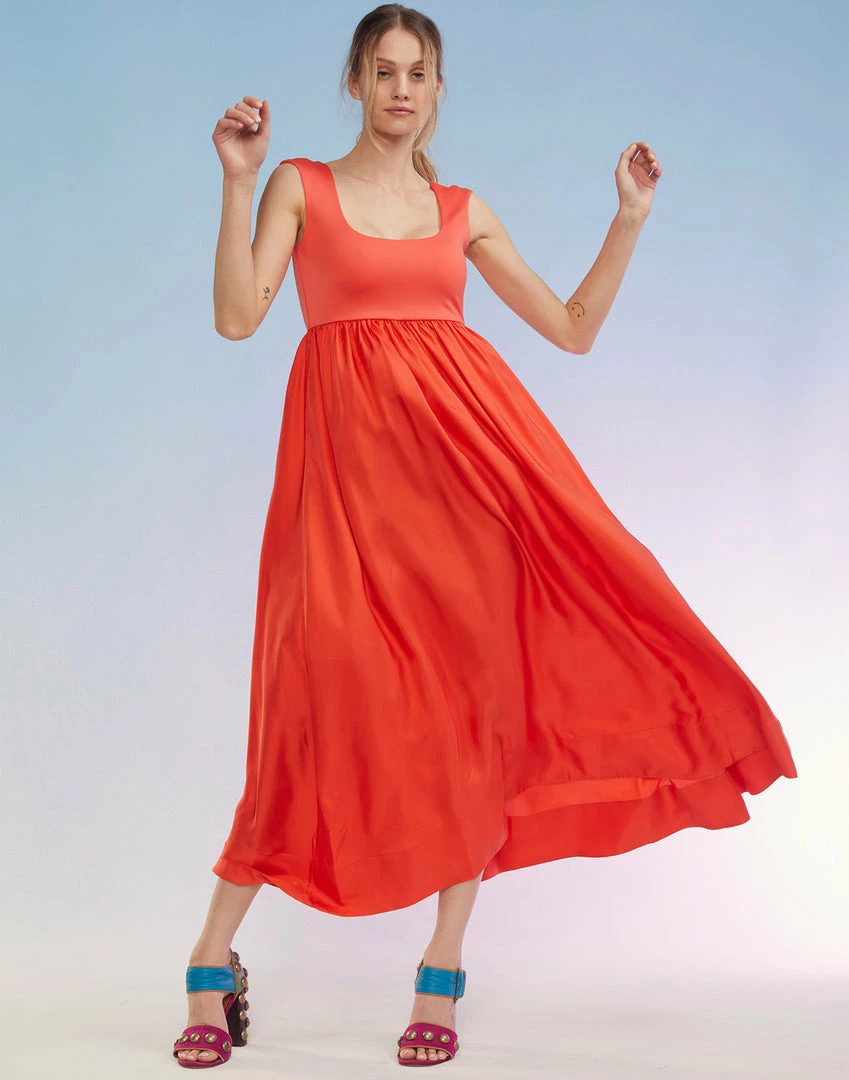 The Ultimate Pretty Meets Sporty! Sleek and sporty lycra with silk twill skirt.Â