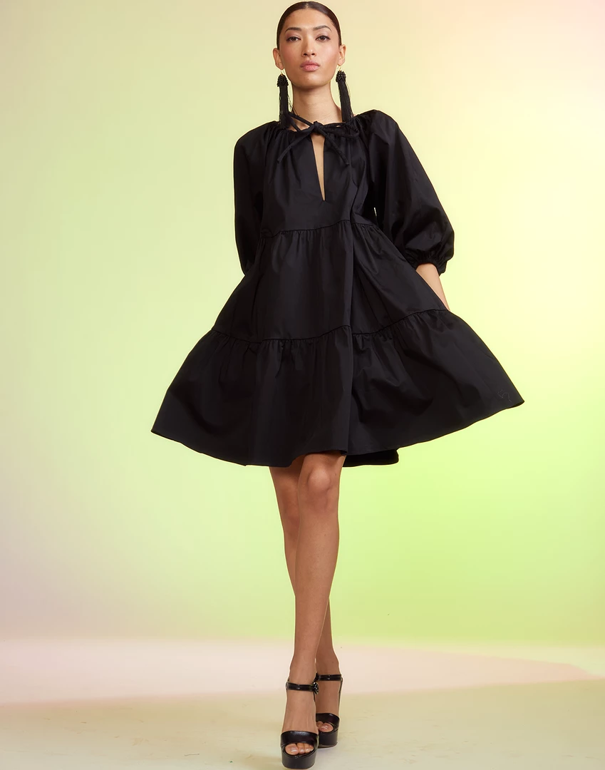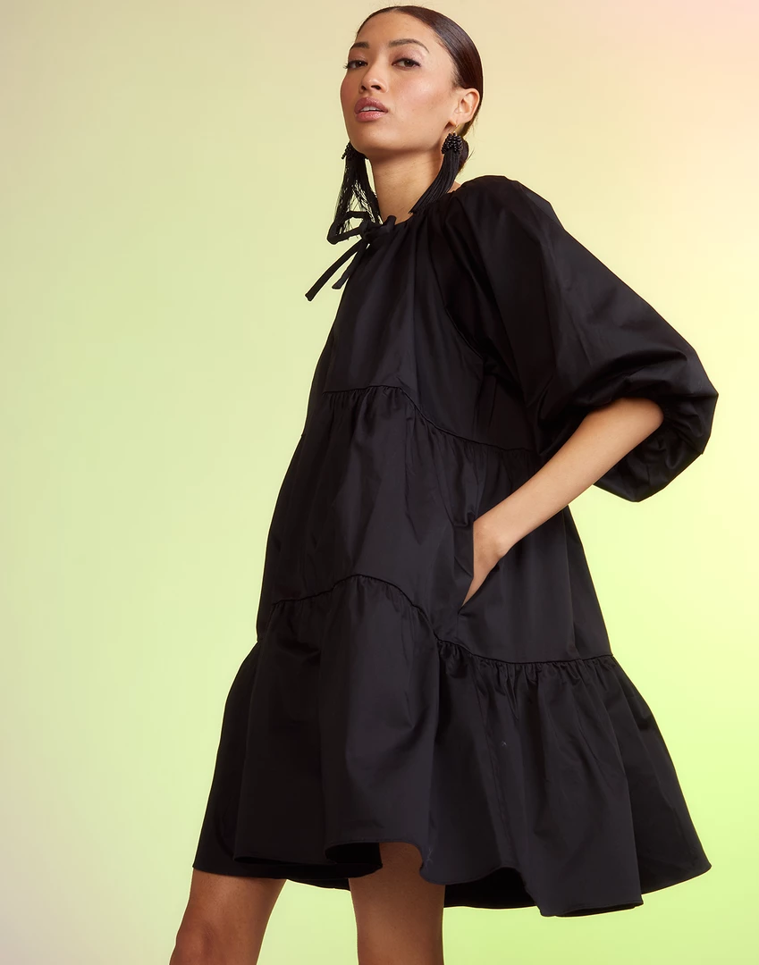 Black cotton tier dress.