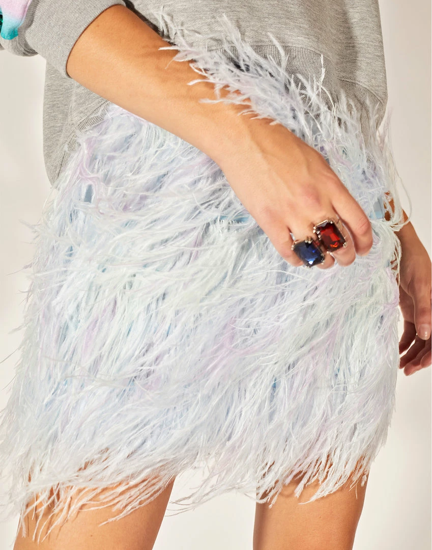 Ostrich feather mini skirt.
