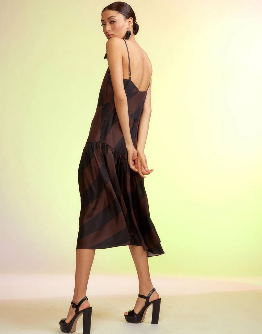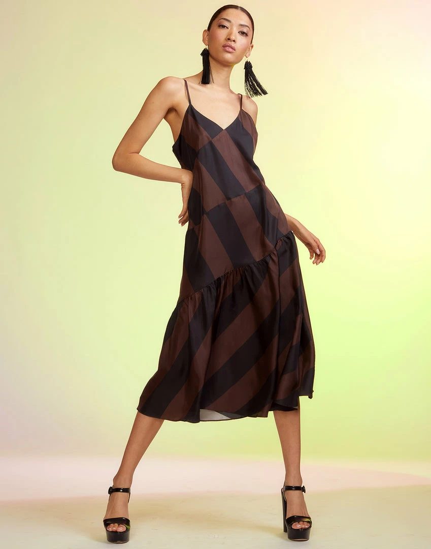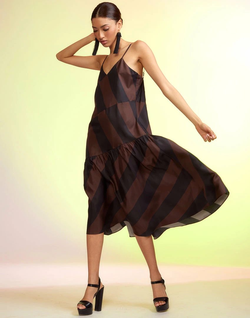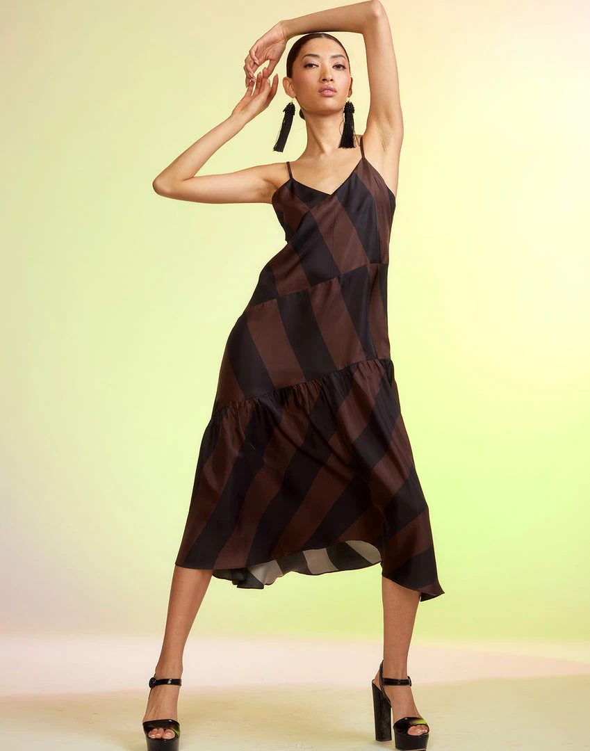 Brown and black stripe slip dress.