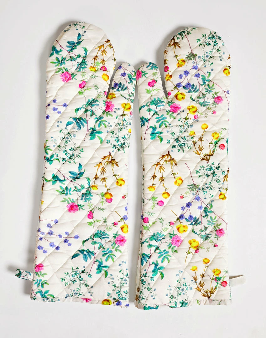 Extra long quilted oven mitts.