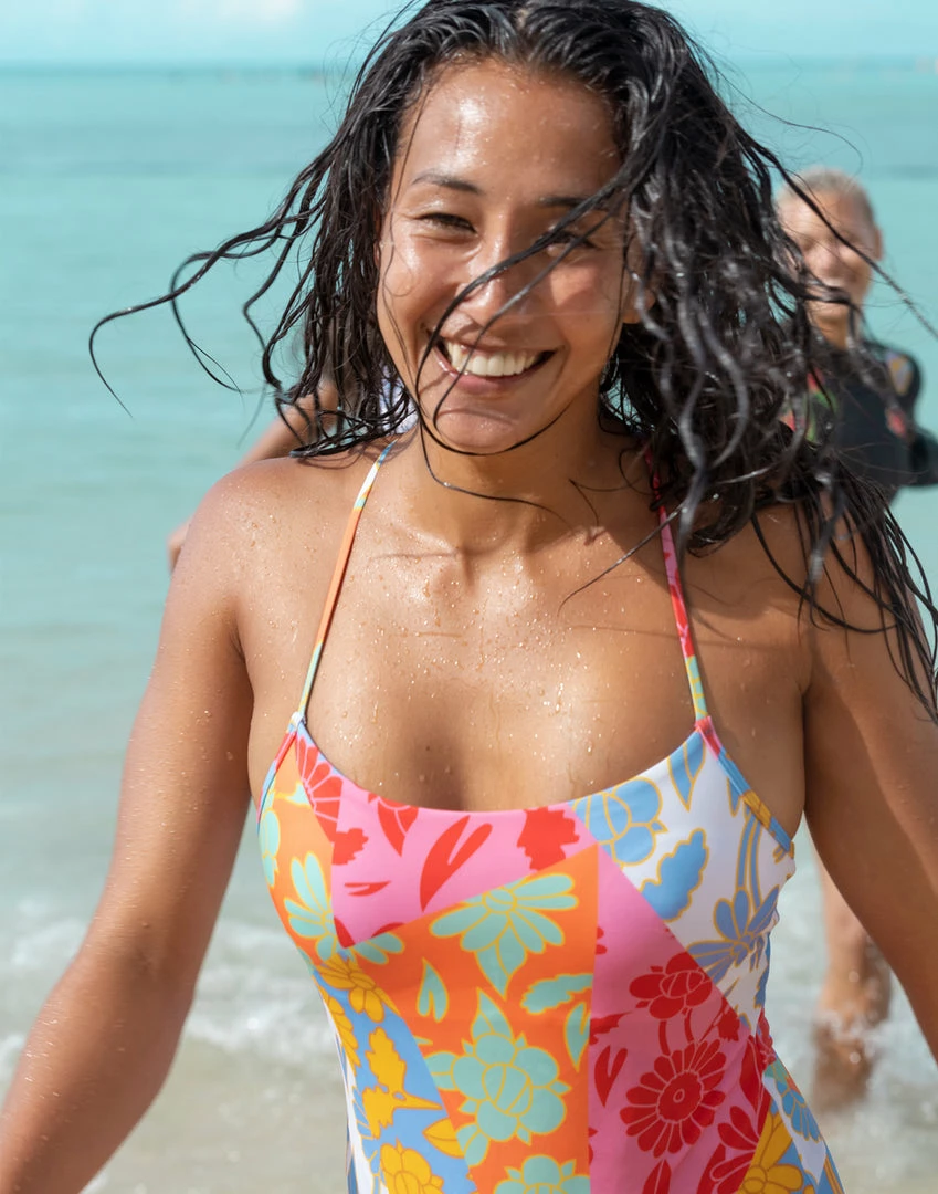 The striking floral print on this one-piece swimsuit of the ROWLEY x ROXY Collection brings new energy to a swim classic. The flattering fit features adjustable straps, high-performing VITA Xtra Life™ Lycra® for maximum comfort and flexibility, and a scoop neckline for cute summer style.