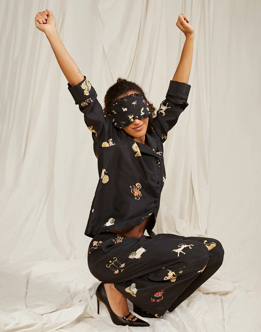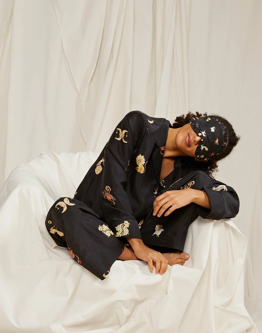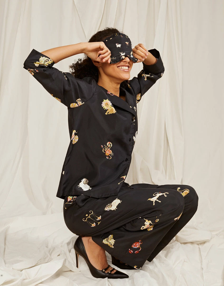 Silk eye mask with all over zodiac graphic.